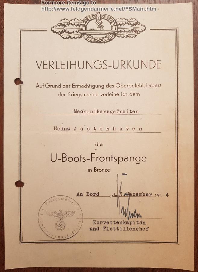A photo of the recipient, Mechanikersgefreiten Heinz Justenhoven is included.