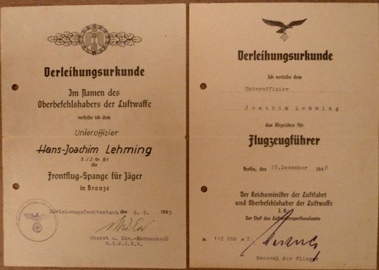 by the commander of Luftwaffenstab Krim) and Iron Cross First Class (signed
